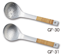| GF-30 籐づる巻アルミ京杓子 穴明φ75×240mm GF-31 籐づる巻アルミ京杓子 穴無φ75×240mm |
